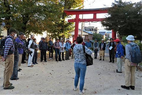 発掘が進み古墳自体はほとんど残っていない太鼓塚古墳群の説明後、志賀八幡神社で解散。