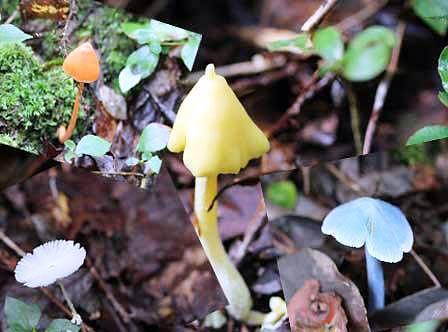出会ったキノコの名前は、黄色のキイボカサタケ・赤色のアカヤマタケ(アカイボガサタケ)青色のソライロタケなどらしいが定かでない。それにしても、カラフルなキノコ達であった。今まで、キノコと言えば、中毒死などを思い浮かべ忌み嫌い、避けてきたようだが、キノコを通じて森の多様性を感じてみたいと思い始めた。