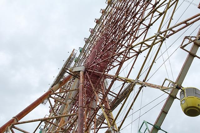 2013年9月より解体が開始され、3か月で姿を消すと言われたので、その雄姿を見収めいと思い、9月2日雨であったが、妻を誘って出掛けた。と言うのは、琵琶湖大橋周辺を何回もウオーキングしている割には、観覧車を真面に撮っていなかった。目印にしていた。が、忌み嫌う遺物として、あえて避けていたかもしれない。