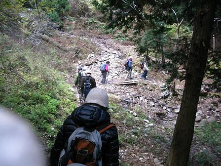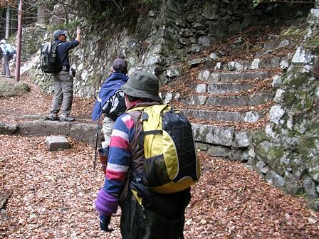 この日、山スカートをはいたヤングの山ガールが「そんなものあったことも知らずに・・・」何食わぬ顔で通過していった。無論、毎日の散策路のように歩いている老夫婦、水の補給するパイプを咥えながら身軽に駆け抜けていくトレイルランニングの人など今まで考えられなかった姿をした様々の人に出合った。この時、古道と言われる割には、訪れている人々の姿を見ていると、千年の重みを感じさせない現代道ではないかと思えた。