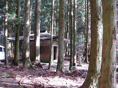 本坂を登り詰める所まで登ってくると、かなりの年月を経て一部崩れかかった石垣が現われ、そして杉の樹間越しにたたずむ祠があった。この打ち捨てられたような祠の周辺には、ただならぬ雰囲気が漂っていた。晴れた日も曇った日も同じように、光が淀んでいるようであった。かつてこの地には本殿や拝殿を持った社殿があった所だ。信長の焼き打ちまでは、この周辺にも立派な建物が並んでいたのだろう。そばにある『薬樹院之碑』の石碑の受け台の部分に、亀らしき像があるので、ここを亀塔と呼ばれていた。