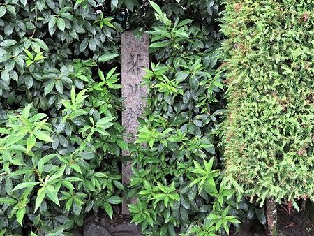 Google Mapに従い指示されているところに着いているのに見つからない。 周辺をうろうろ、公園まで行きすぎ、戻って立派な民家の生け垣の外側にあった!
