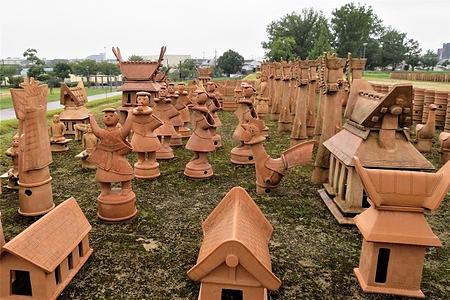 建造時期の他、継体天皇陵であるとされる理由に埴輪祭祀場が発掘された。 写真は復元された埴輪祭祀場