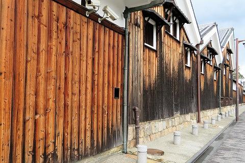 西に進んで近代化産業遺産、種々の文化財に指定されている松本酒造の外観。