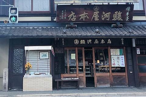 西岸寺を出て西へ、電気鉄道事業発祥地の碑は駿河屋本舗のすぐ横にあり、駿河屋本舗のご主人が歴史をしっかり教えてくださった。 メンバーもお礼に?お土産の羊羹等を買い求めていました。 写真は季節が違いますが、左端に碑が見えます。