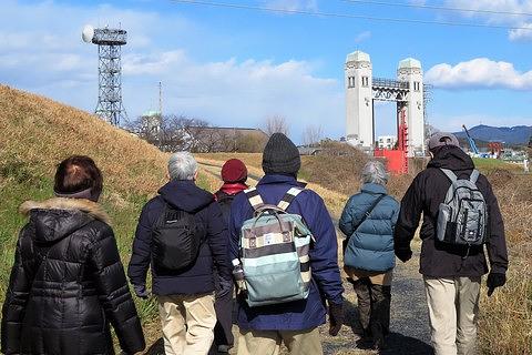 同社のビデオを拝見して、三栖閘門へ向かいました。 天候にも恵まれ、新高瀬川河川敷を気持ちよく閘門へ向かうメンバー。