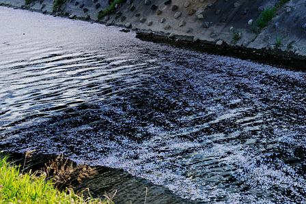 それはそうと、一度だけ、散った花びらが川面に連なって浮かんだり、筋状になって流れる様を目撃したことがあった。
