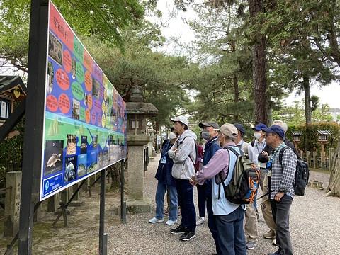 青葉の薫るさわやかな皐月の25日、フォトウオーク5月例会が開催されました。石山駅をスタート地点として、瀬田の唐橋を経て近江一之宮「建部大社」から青紅葉の「石山寺」まで、瀬田川沿いの気持のいいコースでした。石山駅前2階広場に集合し、松尾部長の挨拶の後にいつも通りのストレッチ体操をしてスタートしました。