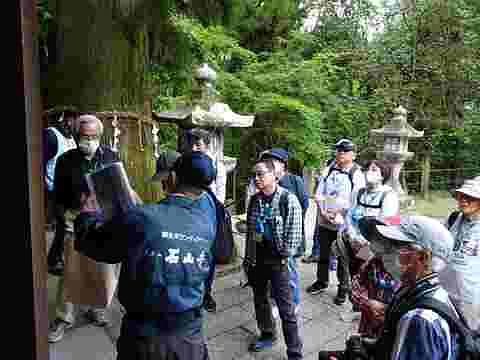 石山寺へ着いたら、今勉強しているボランテァガイドの方が案内です。