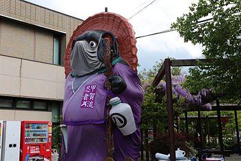 信楽駅前の大タヌキも忍者化粧でお出迎え。