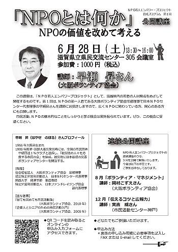 6/28「NPOとは何か」 早瀬昇さん公開講座 のお知らせ