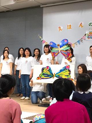 小さいお友達とママ達に喜んで貰おうと動物が沢山出てくるお歌やみんなも大好きな「はらぺこあおむし」の絵本を歌ver.で披露させていただきました