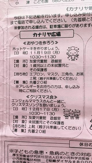 申し込みは今週です!!11月7日(水)8日(木)10〜15時カナリヤ保育園へ☎️