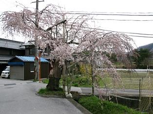 この辺りは、右手は山が迫っているが、左手は田畑が広がっていた。山裾を辿っていくと、しだれ桜が咲いていた。桜が咲くと辺りも華やかになるのだが、伊吹山から冷たい風の吹き降ろしがあり、底冷えしていた。