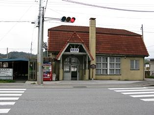 昭和6年、開業当時のままの駅舎は、「鉄道の日」記念行事の一環として選定した日本の近畿地方の特徴ある100の鉄道駅である。「第4回近畿の駅100選」に選定されていた。洋風木造平屋建てで、赤い瓦屋根と高い煙突が印象的であった。