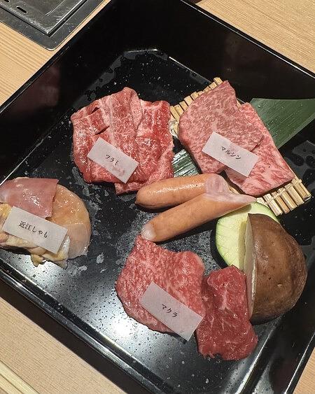 落ち着いた雰囲気の個室で、希少部位を含んだ贅沢なコース料理をいただきました。