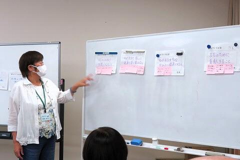 昼食後は再度各グループに分かれて、まちづくりでは〇〇が大切であると表現することを話し合いました。
