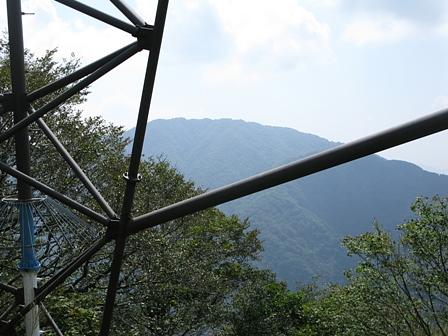 鉄塔越しに見えるのが形のいい妙理山