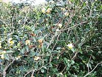 この茶畑の一画に、世話されていない木々が、無造作に茂っていた。ツバキやサザンカではないかと思われる白い花を見かけた。近くで作業している方に尋ねると「お茶の木だよ。世話をしなくなると、花が咲く。一旦花を咲かせるとお茶にならない」と言っていた。ここにも老齢化の波が押し寄せているのであろう。