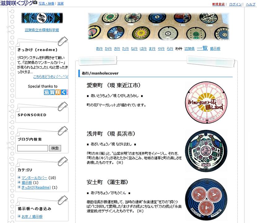 「滋賀咲くブログ」内に manhole.shiga-saku.net という URL をお借りして、「滋賀県のマンホールカバー」というブログを立ち上げ、これらの記事を投稿したのは 2009 年のことでした。