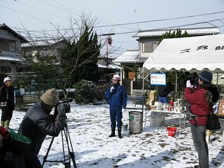 久野部東自治会の地震災害総合訓練に野洲市長 仲善彰が来られ、激励された。この訓練にびわ湖放送の取材もきていた。