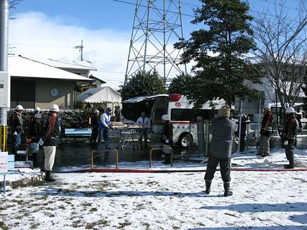 訓練とは言え、消防署から消防車、救急車なども出動してもらい、119番通報、負傷者搬送、初期消火などの実地訓練が行われた。この間、寒かった。顔見知りの方達と「実際、地震災害が起こっていればこの寒さだけではすまない」など話していた。そこに、初めての方も輪に入り、共に話が出来た。