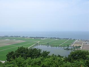これらの街道から湖方面を望むと、否応無しになだらかな山の姿が目に入ってくる。周囲約6kmのこんもりとした姿をしている。荒神山である。