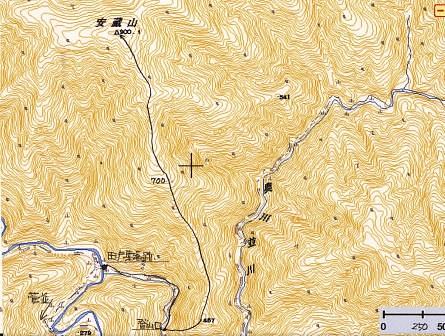 この周辺の山々(安蔵山、横山岳、七々頭ヶ岳等)は、起伏が激しく急峻な地形である。典型的な大起伏山地で谷壁の傾斜が急である。安蔵山の取り付き口は、中々ない。