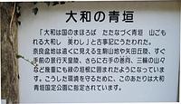 檜原神社を少し過ぎると、左手の視界が開け、道の脇に立つ「大和の青垣」案内板には、古事記にうたわれた「大和は国のまほろば たたなづく青垣 山ごもれる大和し 美わし」と記されていた。
