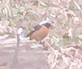 ジョウビタキハ全長約15cmで、雄は頭が銀白色、顔は黒色、腹は赤茶色。雌は体が灰色味のある茶色。翼に白斑があります。