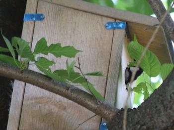 さくらの木に鳥小屋を造っておいたら巣を造りました。
