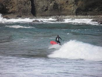 好きな人は季節を選ばず。この真冬にサーフボードにまたがりスイスイ♪