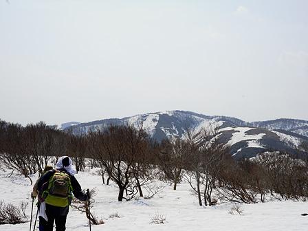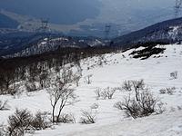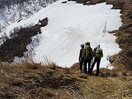 武奈ノ木平のあずまやで小休止の後、しばらく進み、砂防堰堤を過ぎたあたりから急登を登りきると、トレースも定まらないなだらかな雪田帯となった。