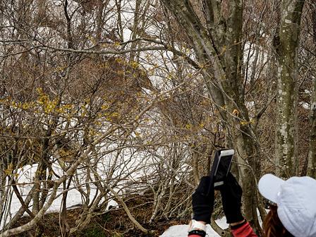 この一帯は寒地性の植物が生育しており春には色んな花が咲くが、まだ寒いのか、見かけた花は、「マンサク「」だけだった。