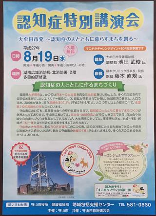 明後日の8月19日(水)、守山市の北消防署 2階 多目的研修室で行われる「認知症特別講演会」で歌わせていただく事になりました