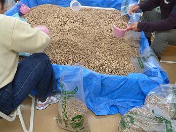 ペレットストーブの燃料、ペレットは、地元の作業所の皆さんが袋詰め作業をされています。