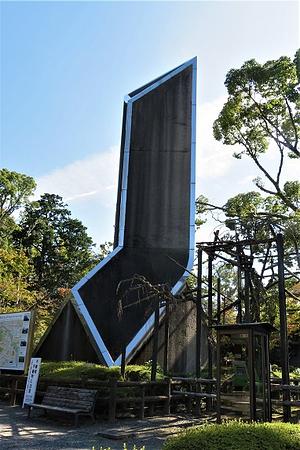 エジソンが発明した電球のフィラメントに使われて有名になった石清水八幡宮の竹。 それを記念して建てられた記念碑。
