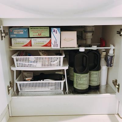 洗面台の下やストック品、着替えなどを少し整理して頂き、新しくストッカーを投入!