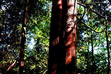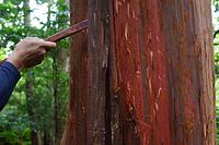 冬場の乾いた時期をえらんで、重要文化財など日本建築に欠かせない屋根用の檜皮を採取していた。一度皮を剥いで8~10年くらいたつと、新しい表皮ができるようだ。