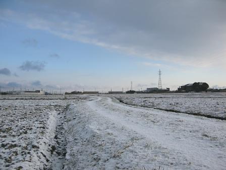 希望が丘に通じるこの道は、凍てつき寒々としている。 辺り一面真っ白となった道は、空虚感が漂い、益々寒く感じる。