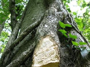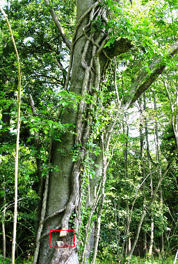 ここで、真っ先に目についたのが、ツタに絡まった痛々しい一本のケヤキであった。