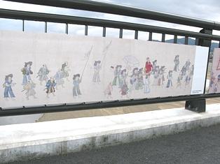 新しく付け替えられた仁保橋の欄干には「朝鮮通信使行列絵巻」と「琵琶湖図」が取り付けられていた。