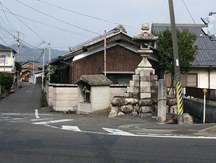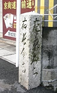 縄手町を南下して音羽町をぬけると、県道2号線に出くわした。そこには、大きな常夜燈と道標があり、八幡城下の東口にあたるところだ。