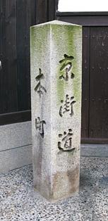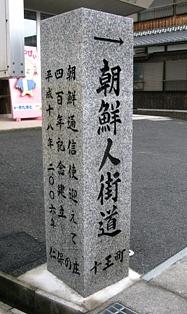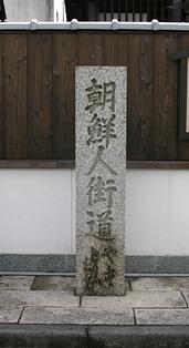 朝鮮人街道は旧市街地の中央を東西に走っており、碁盤状に区画されたところでは「京みち」写真№4「京街道」写真№5「朝鮮人街道」写真№6と刻まれた道標が見られた。寺恩寺町近くで非常に古く判読不明の道標№7があった。