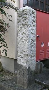 小舟木町道標 「長命寺一里」「左 京みち」。写真№3。 この道標は、小舟木町観音山ふもとのL字型の曲がり角にあった。 近江八幡では朝鮮人街道を「京みち」「京街道」と呼ばれていた。「長命寺」は琵琶湖湖畔上にある西国三十三ケ所霊場第31番の長命寺のこと。