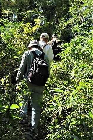 古墳を登るメンバーの後ろ姿、坂は思ったより急で結構きつかったかも知れない。
