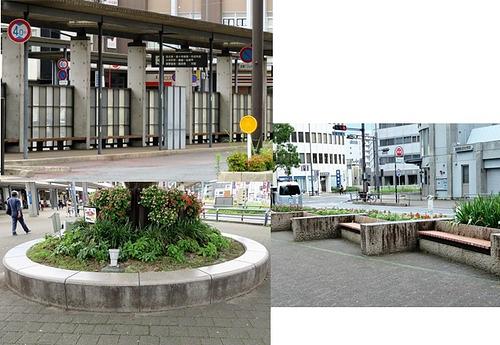 大津駅で弁当を食べる場所は、駅前のベンチ、バス停のベンチ、植木の周りの腰掛になります。