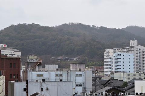 大津城本丸跡(浜大津明日都)から、長等山を望む。