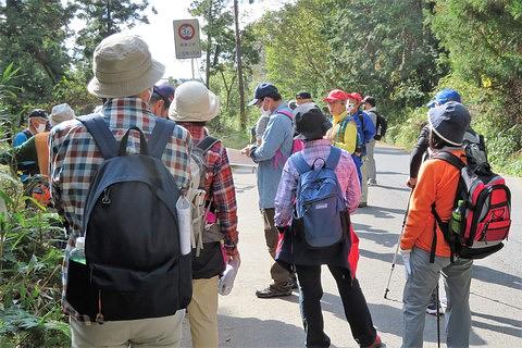 首藤さんはおやじのたまり場の街道ウォークでもガイドとして活躍されています。 写真中央右で赤いキャップに黄色いシャツで説明されています。