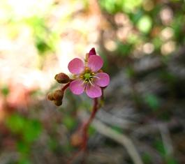 私が、希望が丘で食虫植物に出会ったのは、数年前植物観察会に参加した時であった。青年の城からスイセン池に行く途中、比較的日当たりよい土手で、「これがコモウセンゴケです」と説明を受けました。虫眼鏡で見なければ判らないほど小さい植物でした。植物園などで見られる優雅な筒形をした壷を持った食虫植物のイメージと余りにも離れていたので、関心もなく聞き捨てていました。